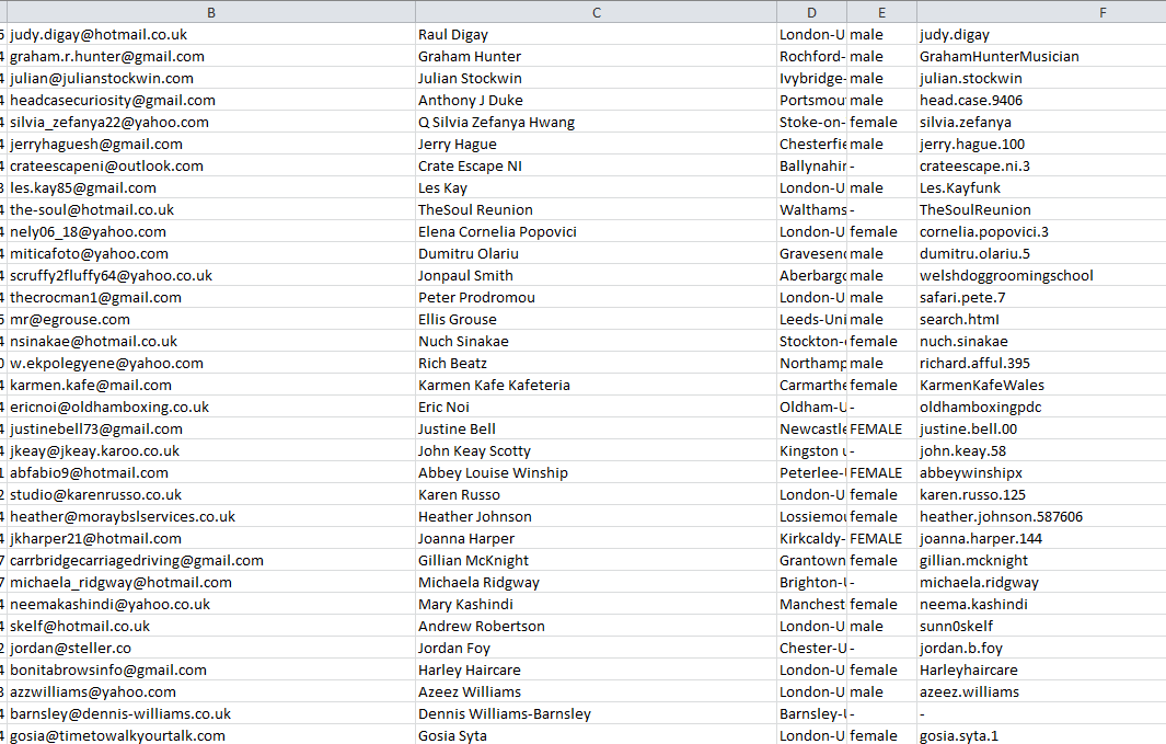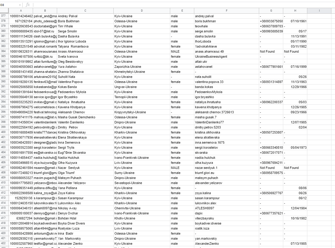 - email пользователей групп/бизнес-страниц от 10к подписчиков