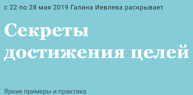 «Это будет 5 вебинаров, на которых я расскажу, из каких чертей и ежиков сделаны наши цели. И почему бессмысленно писать эти списки 100 целей в новый год. И как ставить те небольшие цели, чтобы результаты в конце года вас радовали»