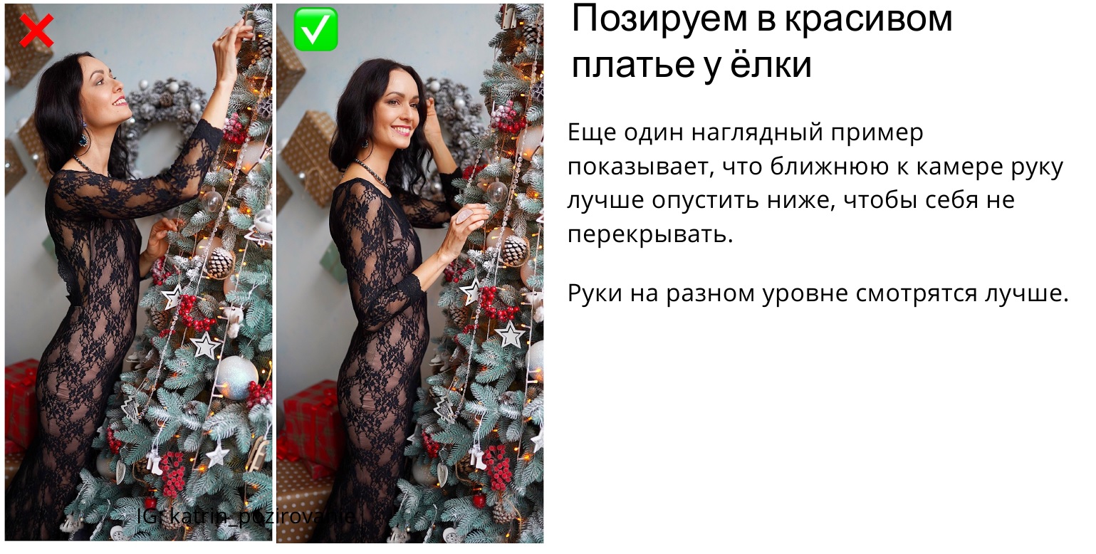 Как использовать гайд В Гайде много идей для новогодних фото, которые Вы сможете воплотить, даже фотографируя на свой телефон у себя дома. А также используйте эти идеи на проф.фотосессии. Ваша подготовка + профессиональный фотограф = очень много красивых фотографий! Не забудьте показать примеры тем, кто Вас фотографирует. Так всем будет понятней, что же Вы хотите увидеть в итоге на фото. Гайд - является дополнением к видео о “Новогоднем позировании”. Как шпаргалка, в которую удобно подглядывать во время фотографирования.