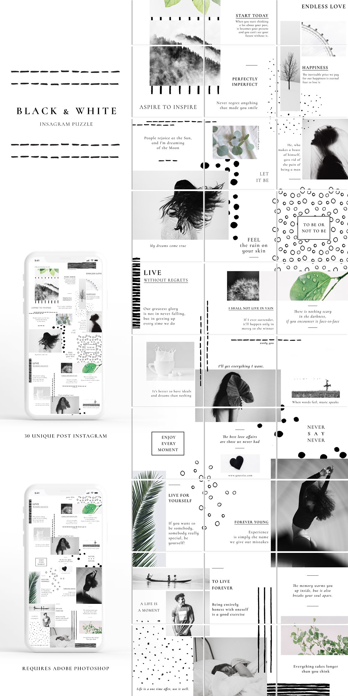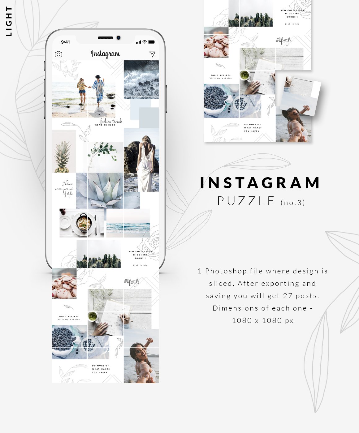 Один файл Photoshop и 27 разных постов в Instagram (в наборе таких 4), которые поднимут ваш профиль в Instagram на новый уровень. Этот шаблон головоломки Instagram оптимизирован для фотографов и влиятельных лиц, но может использоваться всеми, кто хочет показать свою историю по-другому.
