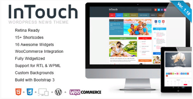 Премиум тема InTouch WordPress Theme является супер-пупер настраиваемой, очень уникальной, отзывчивой темой WordPress. InTouch WordPress Theme сделает всё, чтобы вы смогли сосредоточиться на своей работе или ведение своего блога. Тема работает от параметров панели ОВС, которая предоставляет множество опций для управления и изменяет любой аспект сайта — она хорошо подходит как для начинающих, не имеющих знаний пользователей, так и для опытных специалистов.